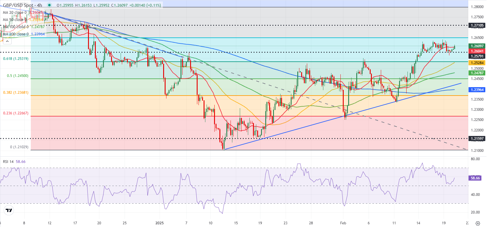 英镑兑美元在周三动荡交易后收复1.2600上方。该货币对需要突破1.2650阻力才能延续上涨趋势。周四美国国债收益率回落对美元构成压力。